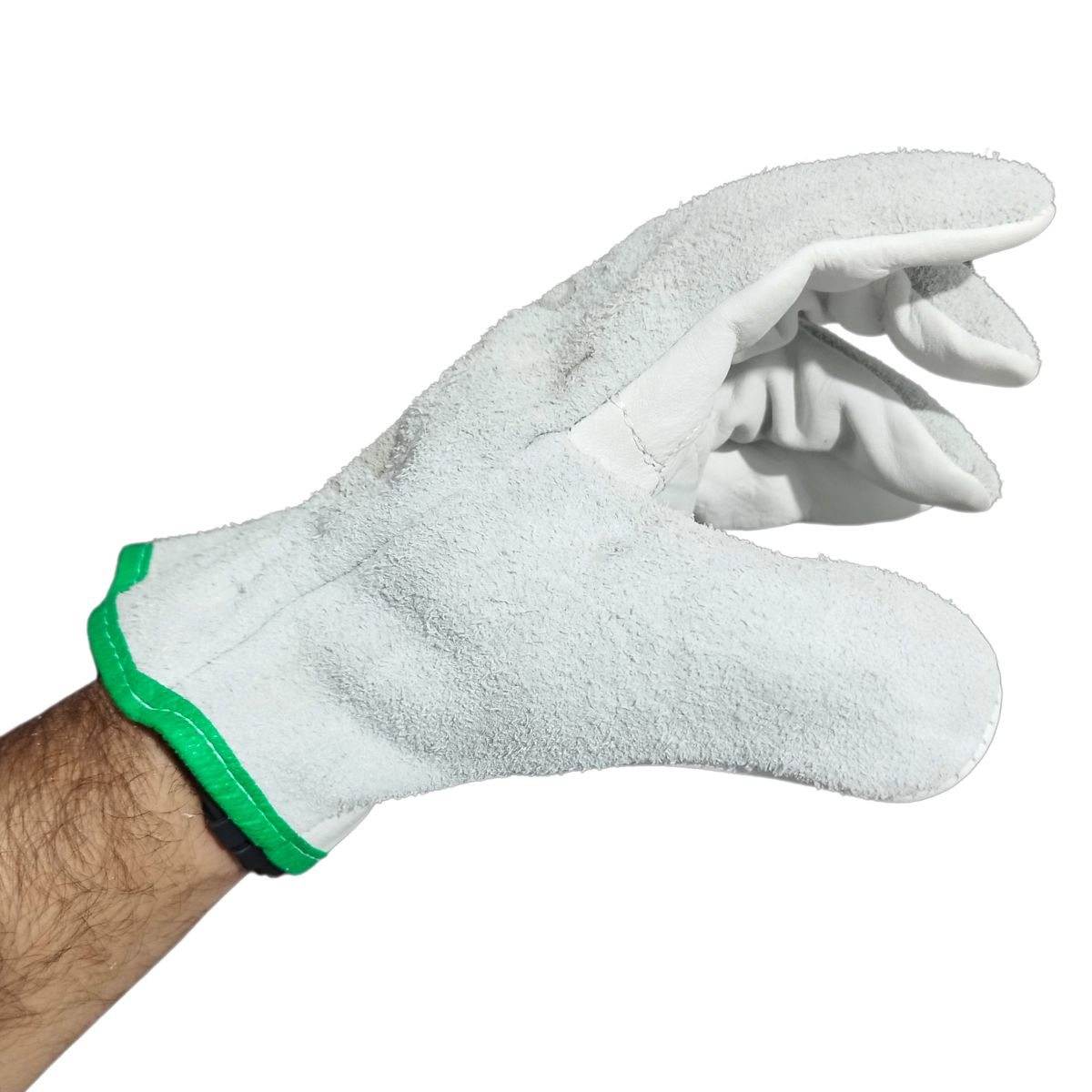 Luva confecciona com couro bovino vaqueta na palma e raspa no dorso, elástico embutido no dorso para ajuste e acabamento em viés!